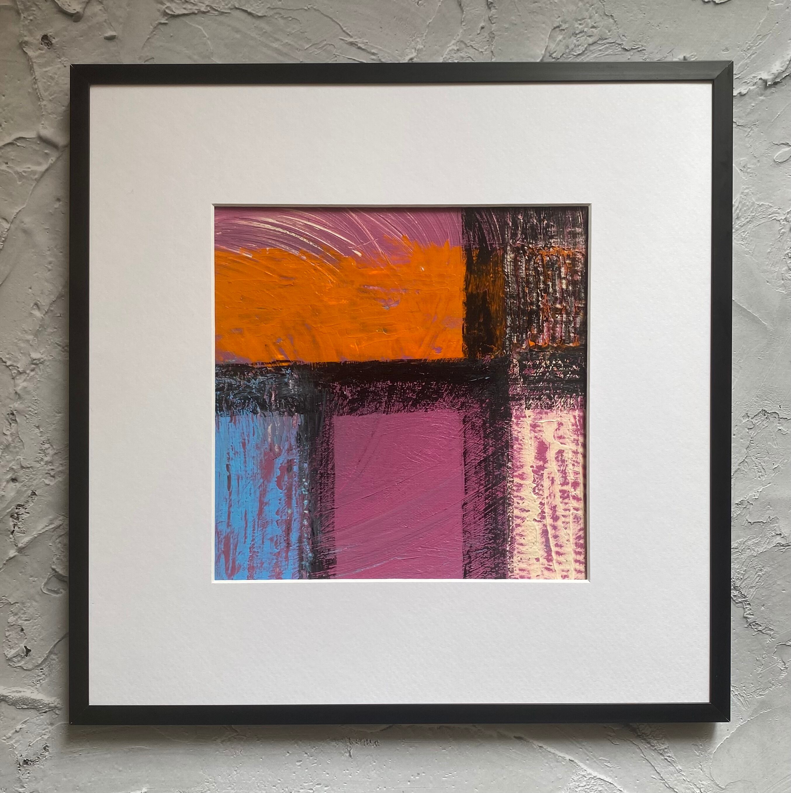 2021年制作の黒アルミフレーム(マット付)付属の1点ものアクリル原画になります。窓からみた海と空。このシリーズはカリフォルニアの桟橋をイメージして描いた抽象画になります。